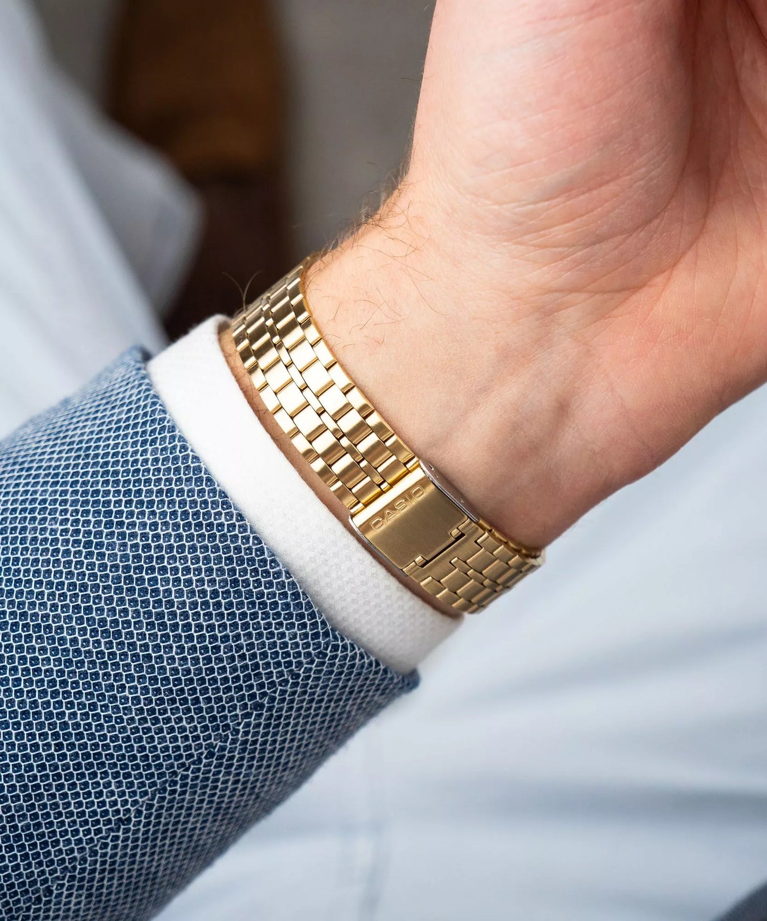 El acabado dorado integral aporta calidez y un nivel de sofisticación superior, convirtiendo un clásico digital en una pieza de joyería moderna.