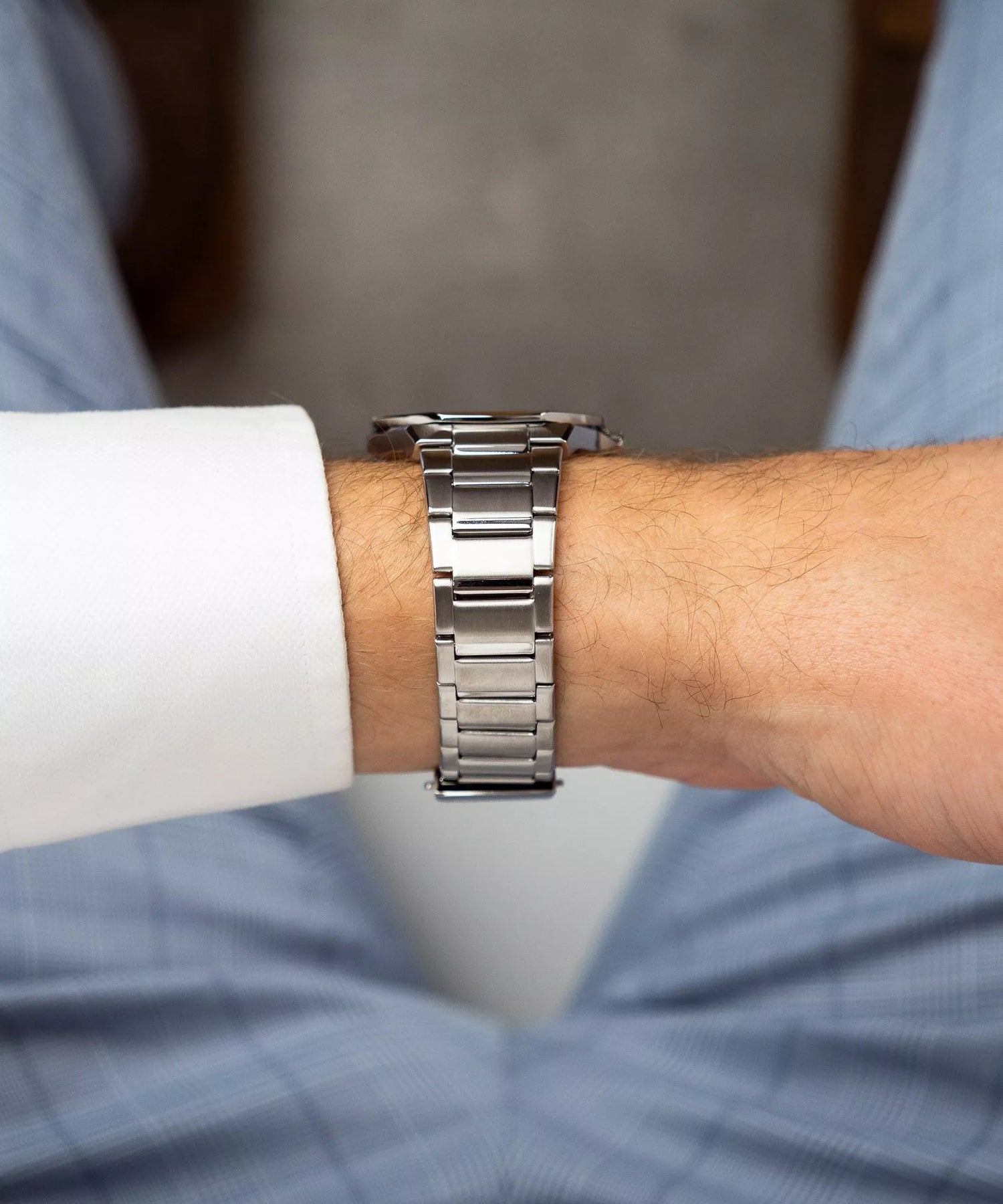 La esfera azul sunray crea efectos de profundidad que cambian según el ángulo de la luz. Los índices plateados aplicados con acabado metálico y las agujas multifacetadas garantizan legibilidad óptima en cualquier condición de iluminación. La ventana de fecha a las 3 horas añade funcionalidad práctica sin comprometer el diseño limpio.