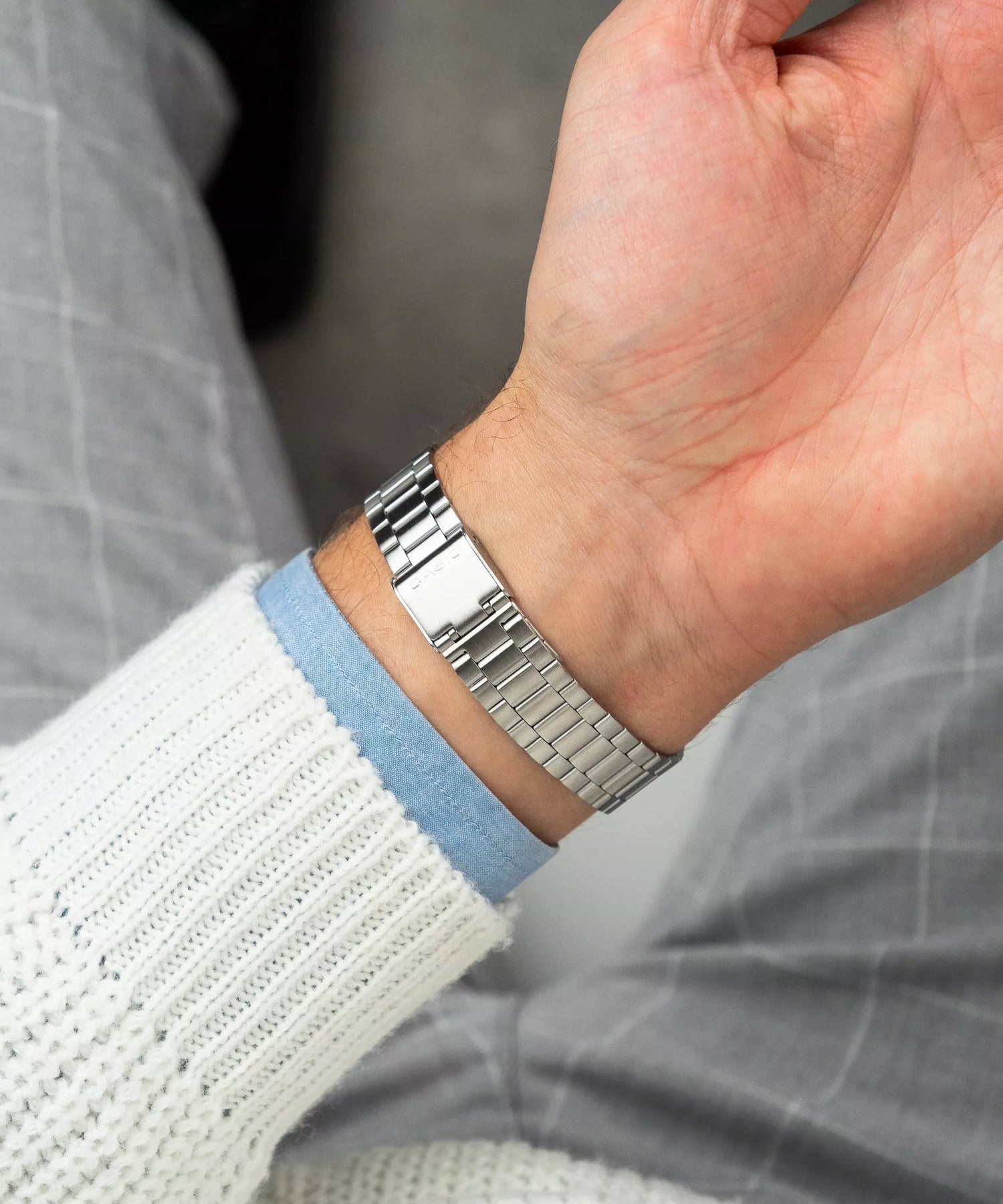 La caja geométrica plateada y la sobria esfera negra capturan perfectamente la nostalgia y el lujo funcional de la época dorada de Casio, logrando un estilo versátil y refinado.