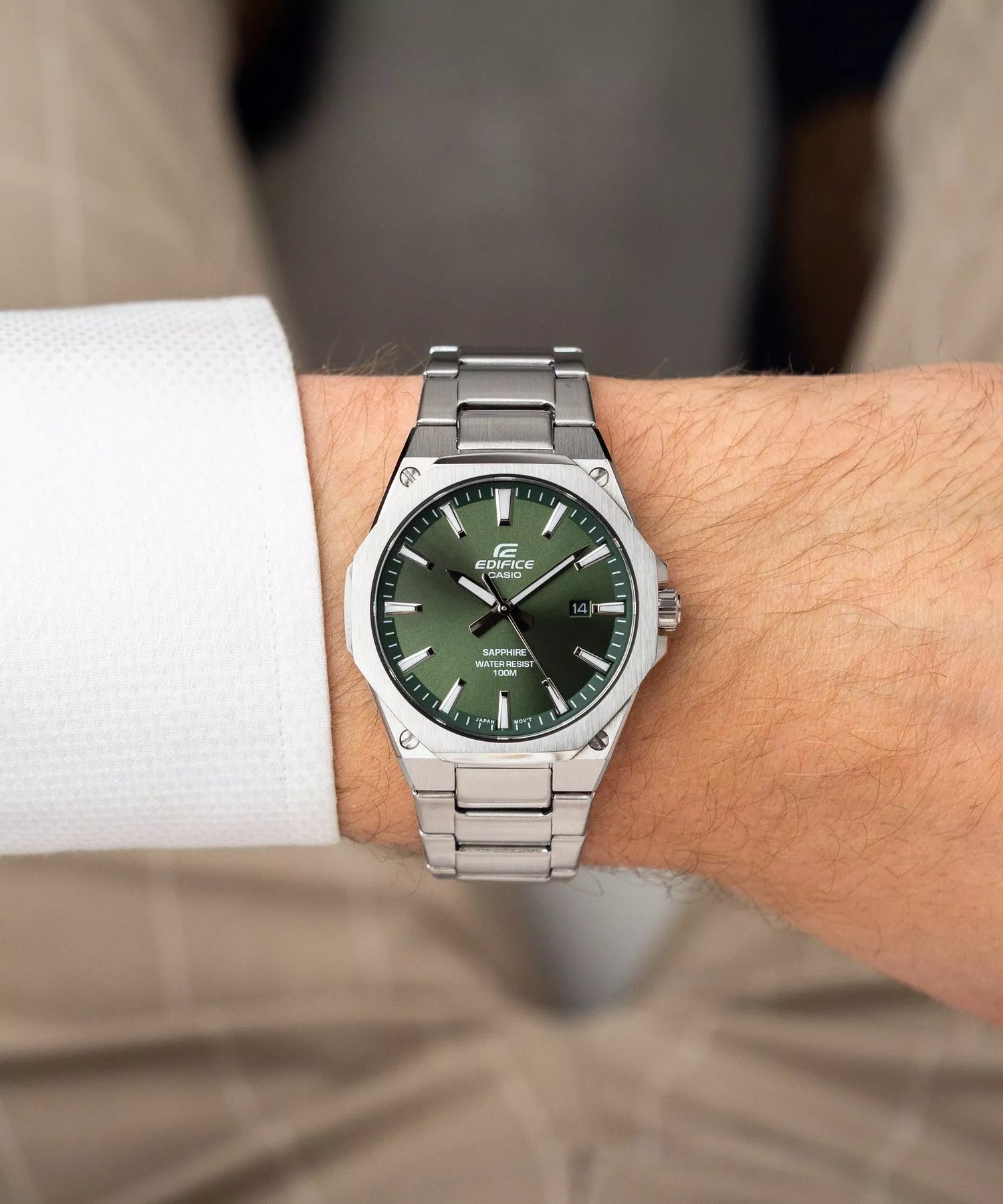 El Reloj Casio Edifice EFR-S108D-3AVUEF representa la cúspide del diseño deportivo y ejecutivo. Destaca por incorporar un prestigioso cristal de zafiro que garantiza una resistencia superior contra rayaduras, resguardando una deslumbrante esfera verde esmeralda. Su moderno bisel octogonal y su revolucionario perfil ultra plano de solo 7.8 mm lo consolidan como la pieza clave definitiva para proyectar profesionalismo, carácter y un estilo de alta gama.