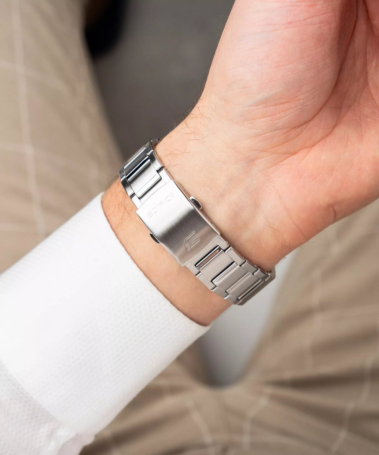 "Excelente compra. Lo ajusté a mi medida en el relojero local y no me lo quito ni para bañarme, aguanta el agua perfecto. La calidad de Edifice es indudable."