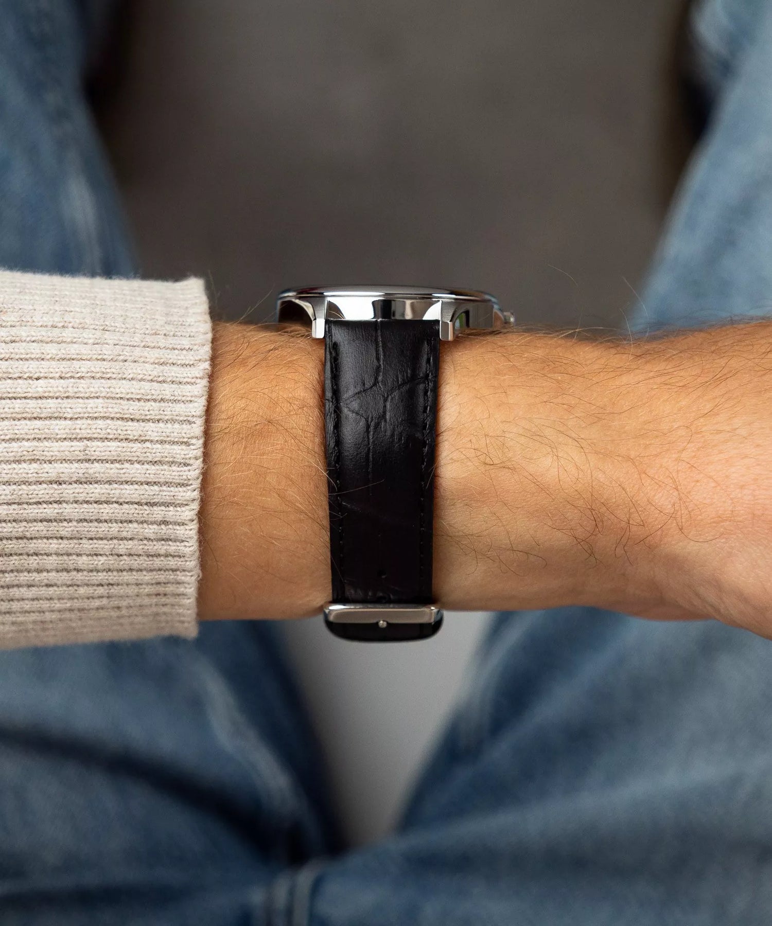 El cuero genuino negro complementa la estetica dress del reloj con una calidez tactil y un confort de uso que el brazalete metalico no puede igualar. Ligero (58 g), elegante y adaptable, hace del MTP-M110L-1AER la opcion ideal para el uso formal prolongado.