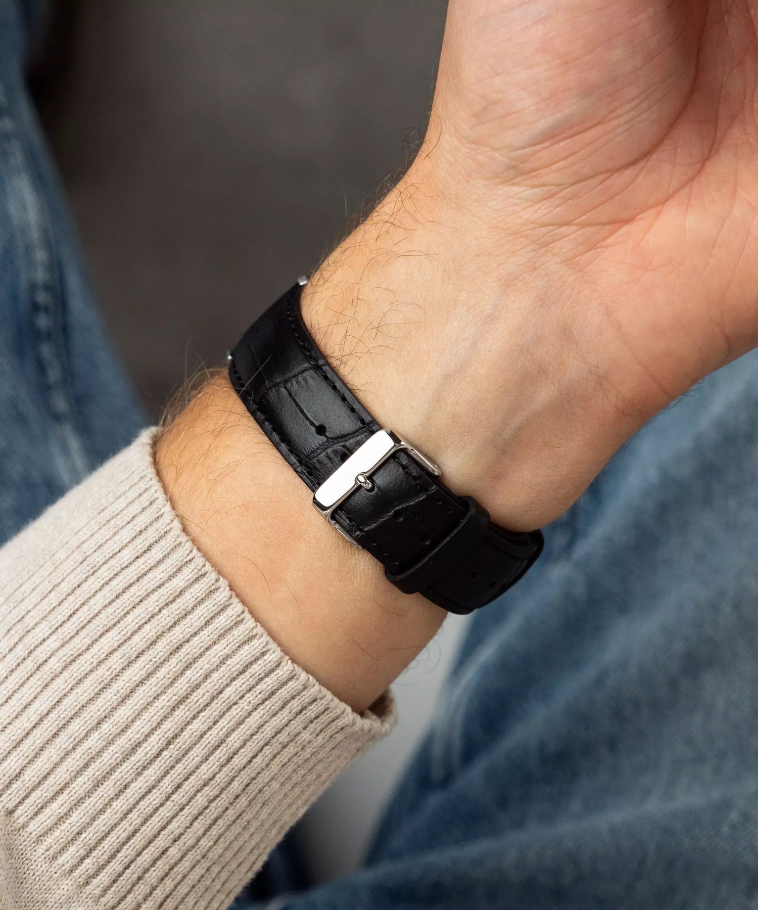 | Correa | Cuero genuino negro — cierre de hebilla clásica |