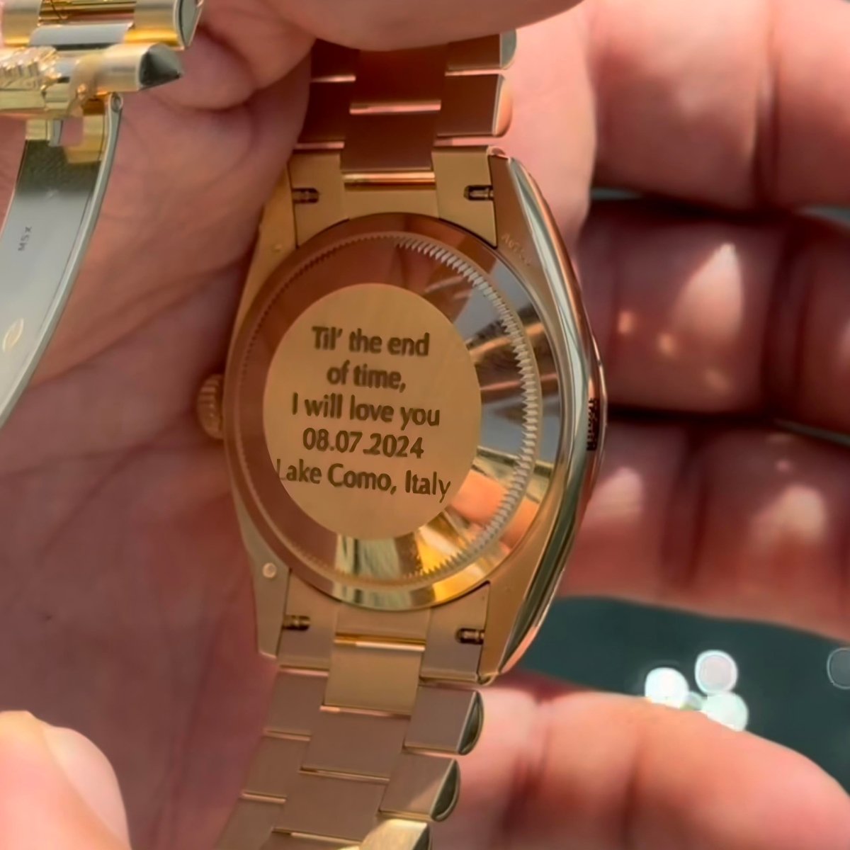 Transforma tu reloj en un recuerdo inolvidable con nuestro servicio de grabado láser personalizado. Ideal para ocasiones especiales como aniversarios, cumpleaños o compromisos, este detalle añade un toque de significado y elegancia a tu regalo.