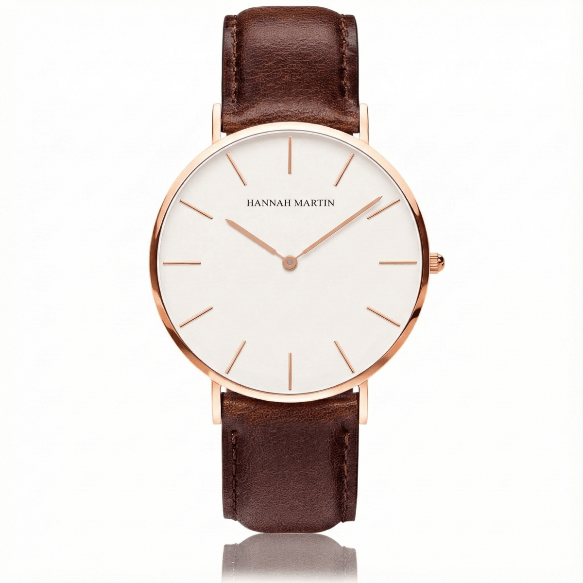 Reloj Hannah Martin Original para hombre cuero marrón oro rosa - Diseño Elegante 40mm